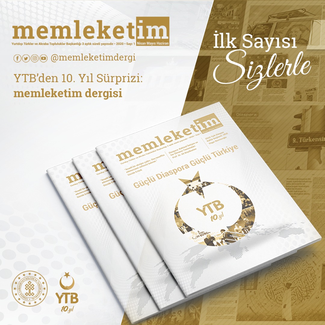 YTB’nin 10’uncu yılında , "Güçlü Diaspora Güçlü Türkiye" başlığıyla yayın hayatına başlayan “Memleketin Dergisi” Türkiye’nin emin adımlarla yürüdüğü yolda dünyanın dört bir yanındaki vatandaşlara merhaba diyor. Derginin ilk sayısında YTB'nin 10. yılına ilişkin YTB Başkanı Abdullah Eren imzasıyla "YTB'nin 10. Yılı Güçlü Diaspora Güçlü Türkiye" başlıklı bir makale bulunuyor. YTB'nin on yıllık faaliyetlerinin de geniş bir şekilde anlatıldığı dergi, aralarında Prof. Dr. Ali Büyükaslan'ın "Kültürel İletişim ve Var Olmanın Yansımaları", Dr. Turgay Şafak'ın "İran'da Selçuklu Mimarisi Ve Tarihane Cami Minaresi" başlıklı makalelerinin de yer aldığı kültür, sanat ve sosyal konulara değinen yazılardan oluşuyor. Memleketim dergisinin ilk sayısında, Amerika’da yaşayan genç yazar Güzide Ertürk ile Türkçe ve Türk edebiyatının yurtdışındaki varlığı üzerine yapılmış bir röportaj da bulunuyor.